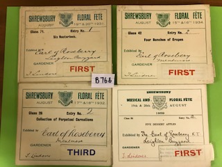 Shrewsbury Floral Fete Prize cards, X2 of 1930, X4 of 1931, X7 of 1932, X1 of 1933, X8 of 1934, X6 of 1953, X4 of 1955, X7 of 1957, X3 of 1958, X4 0f 1959, X5 of 1960, X6 of 1961 |