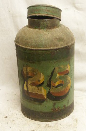 large green tin as used in shops with no 25 on it. Tin has narrw neck with very tight fitting lid |