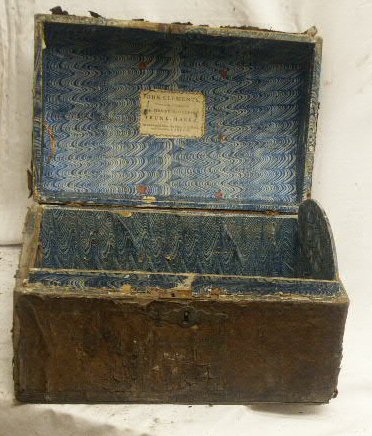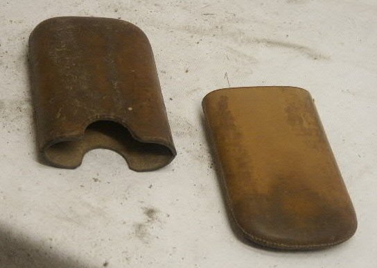 leather spectacle caseconsisting of two similar parts, the smaller sliding within the larger |