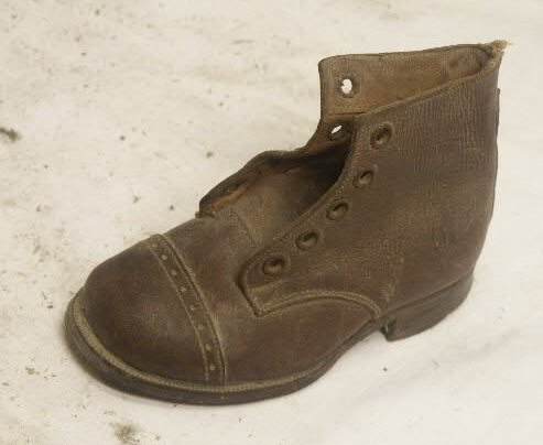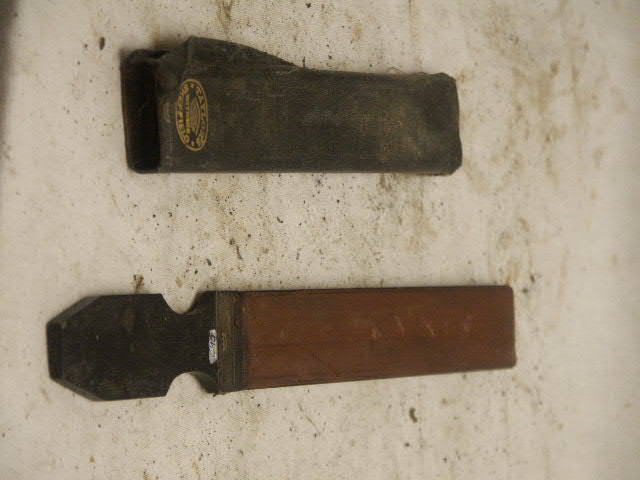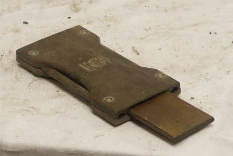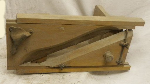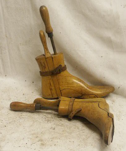 wooden shaped shoe trees two blocks of shaped wood hinged at instep. Peg at heel section. Toe section hollowed ladies shoe. marked 8 3 237R(l on other) |