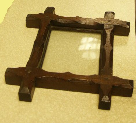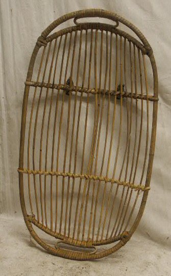 Frame of oven placed over fire. Back of oven is open to fire. Meat hangs from hook. small three sided oven. Top and front are closed with door for meat inspection. |