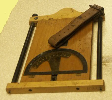 carpenter's square; steel blade with brass-faced hardwood member at right aangles |