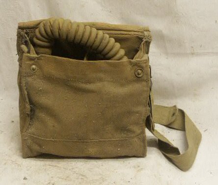 gas mask used by a baby during the 2nd World War. Grey metal object shaped like the top of an egg with a rubber tube and fillter coming from one side and a metal support and the bottom curving down. It has a window on one side. |