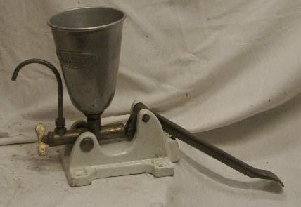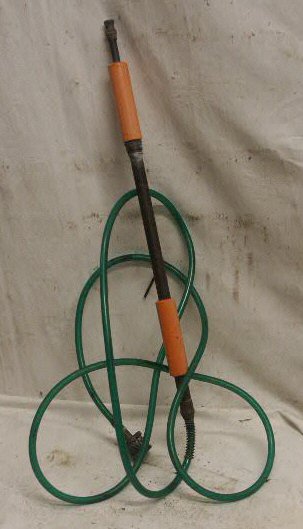 garden syringe; each hand grasps an orange coloured band to produce a reciprocating motion |