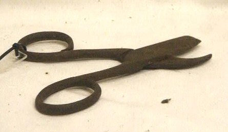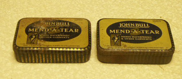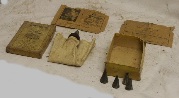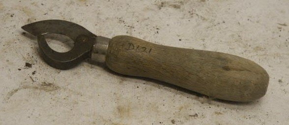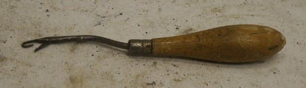 rug making kit in CWS tin; consisting of 4 tools without handles, 5 tools with handles, and a hank of cord |