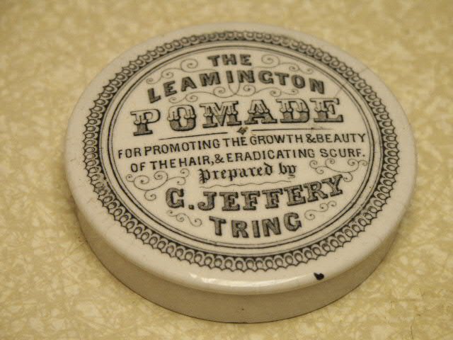 | C402 | Domestic | Pomade | China lid from a jar of Pomade. White china with ,The Leamington Pomade. for promoting the growth and beauty of the hair,and eradicating scurf., Prepared by G.Jeffery Tring printed in black. | CC Bay 6 | |