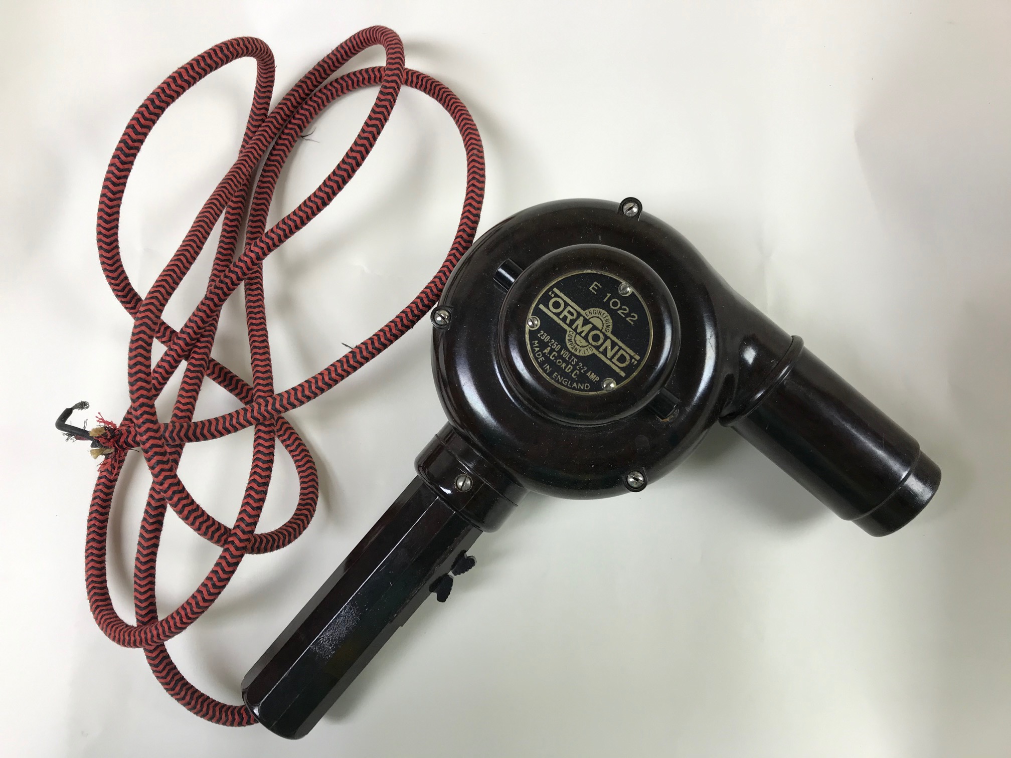 | E318 | Domestic | Hair Dryer | Handheld electric hairdryer. Made by Ormond Engineering Co Ltd. Bakelite case. 1935-1955 | ![]() |