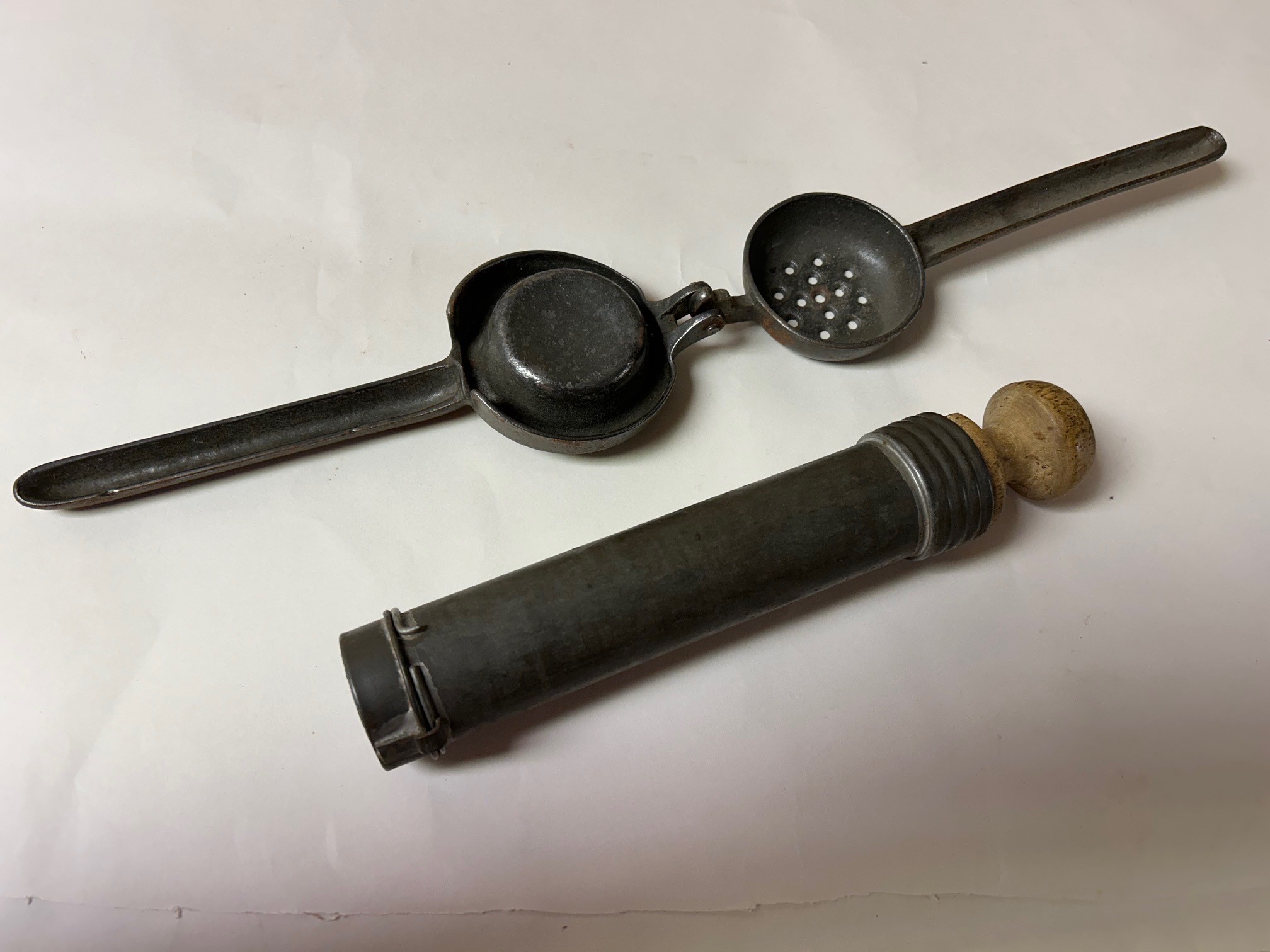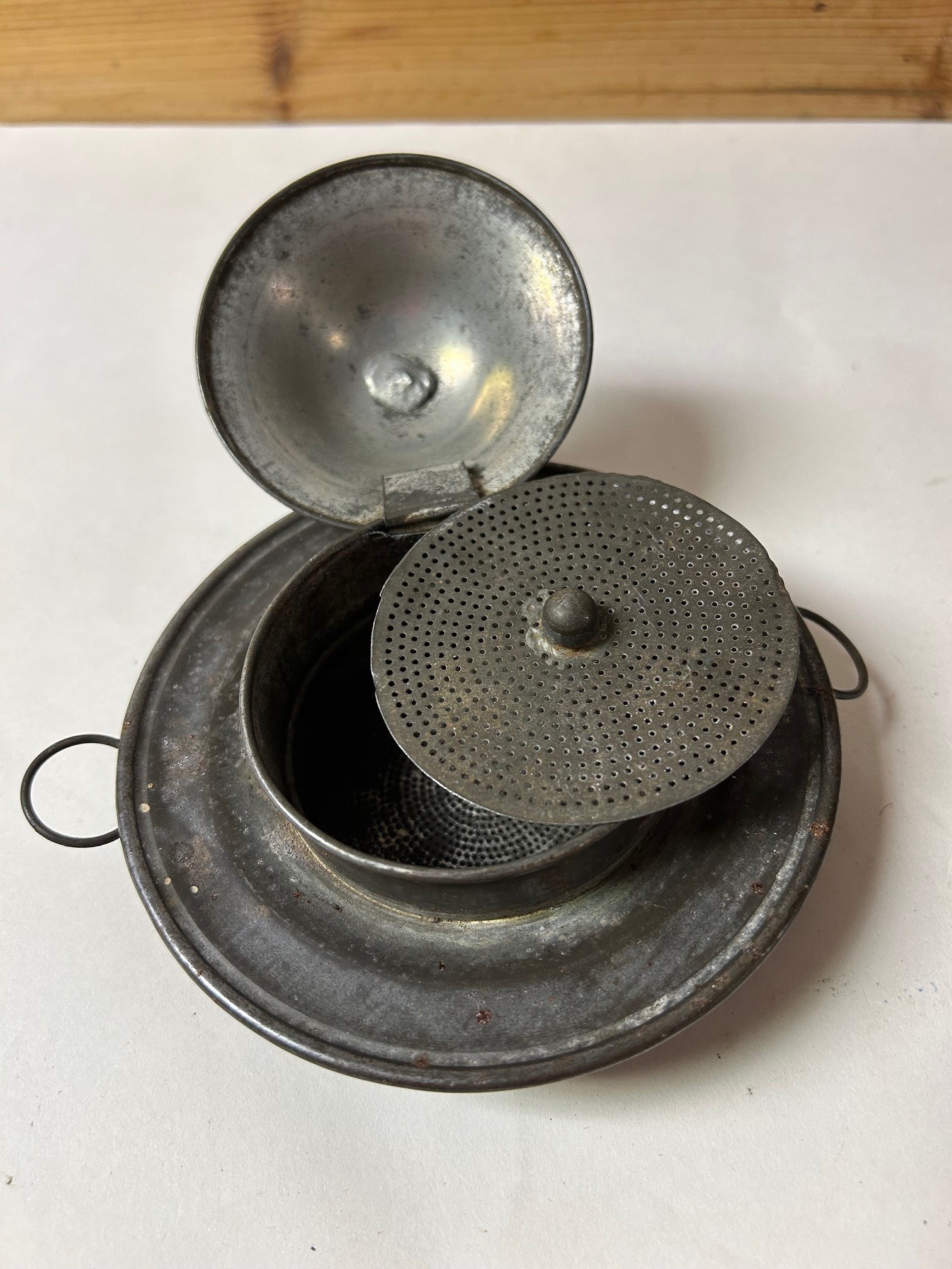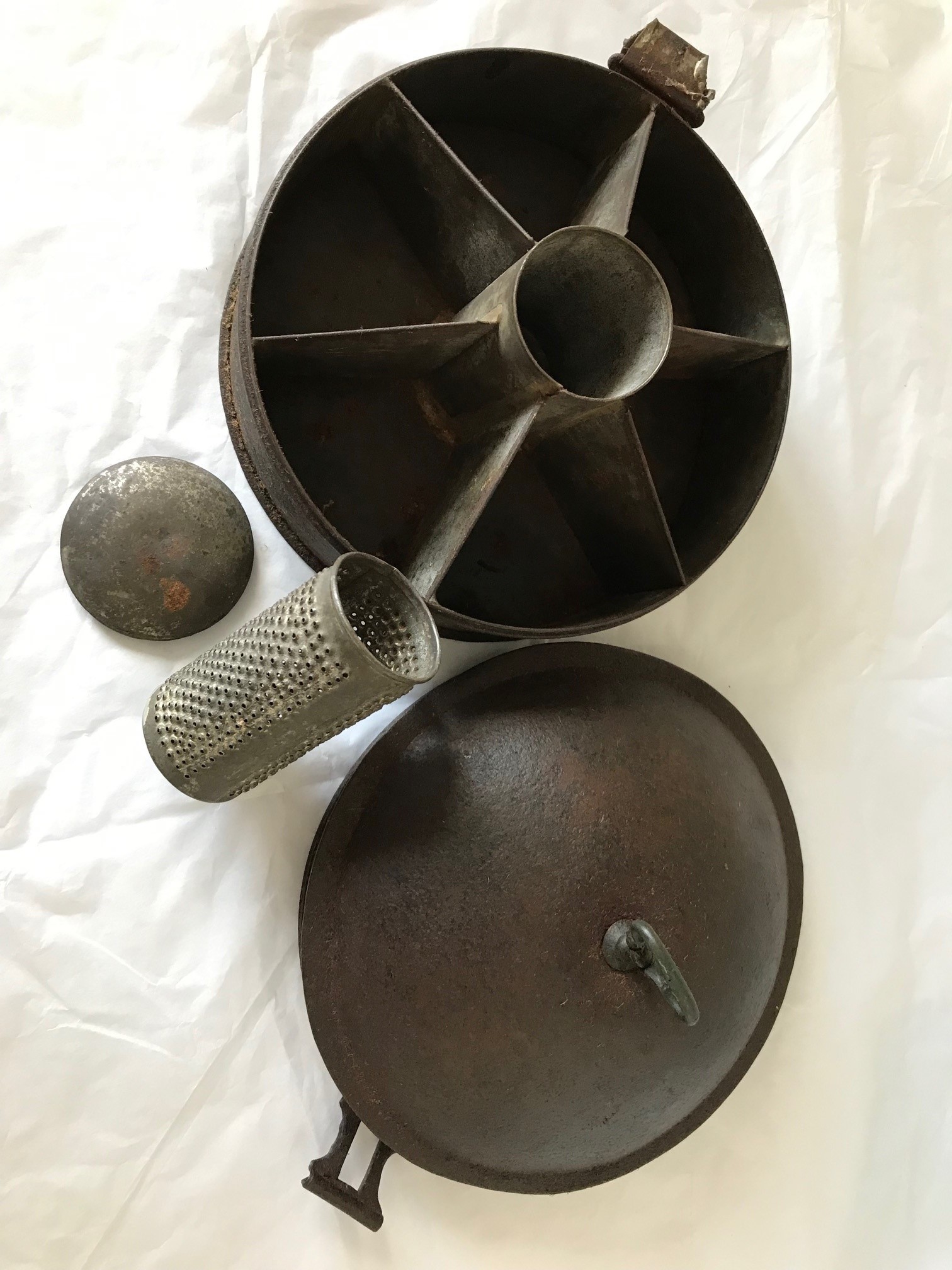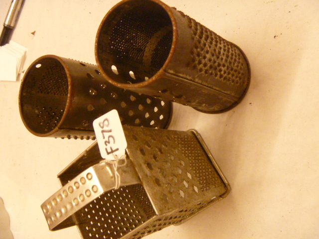 | E368 | Domestic | Tin Sice Box | Early, possibly Georgian, Tin Spice Box with lid, 6 sections and grater. | ![]() |