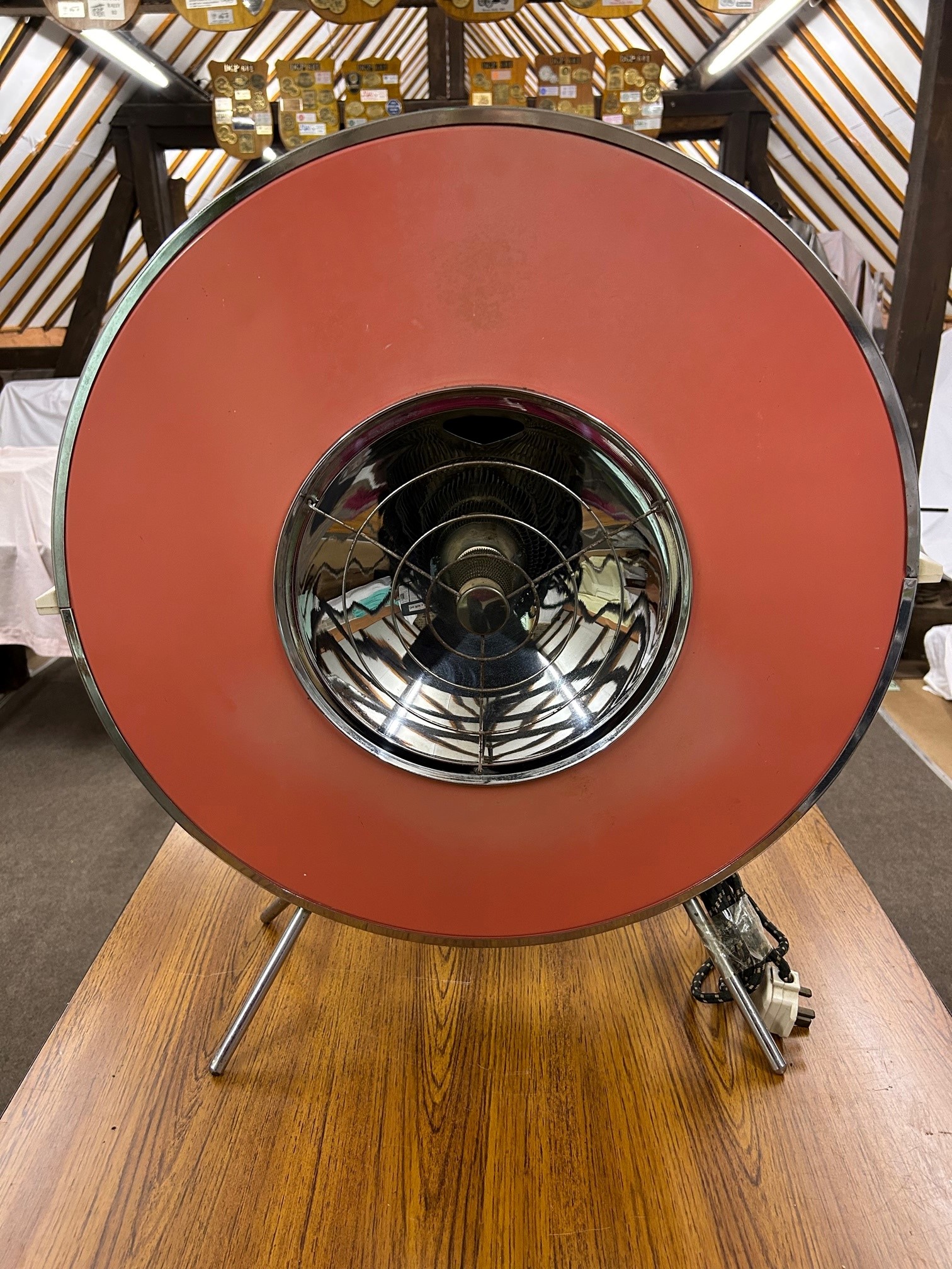 | E459 | Domestic | Electric Heater | Sofono 'Spacemaster' heater, 1960s, of circular form, on chromed tapering legs, lacquered in 'Clover Pink', with manufacturers sign to the side, 60cm diameter | ![]() |