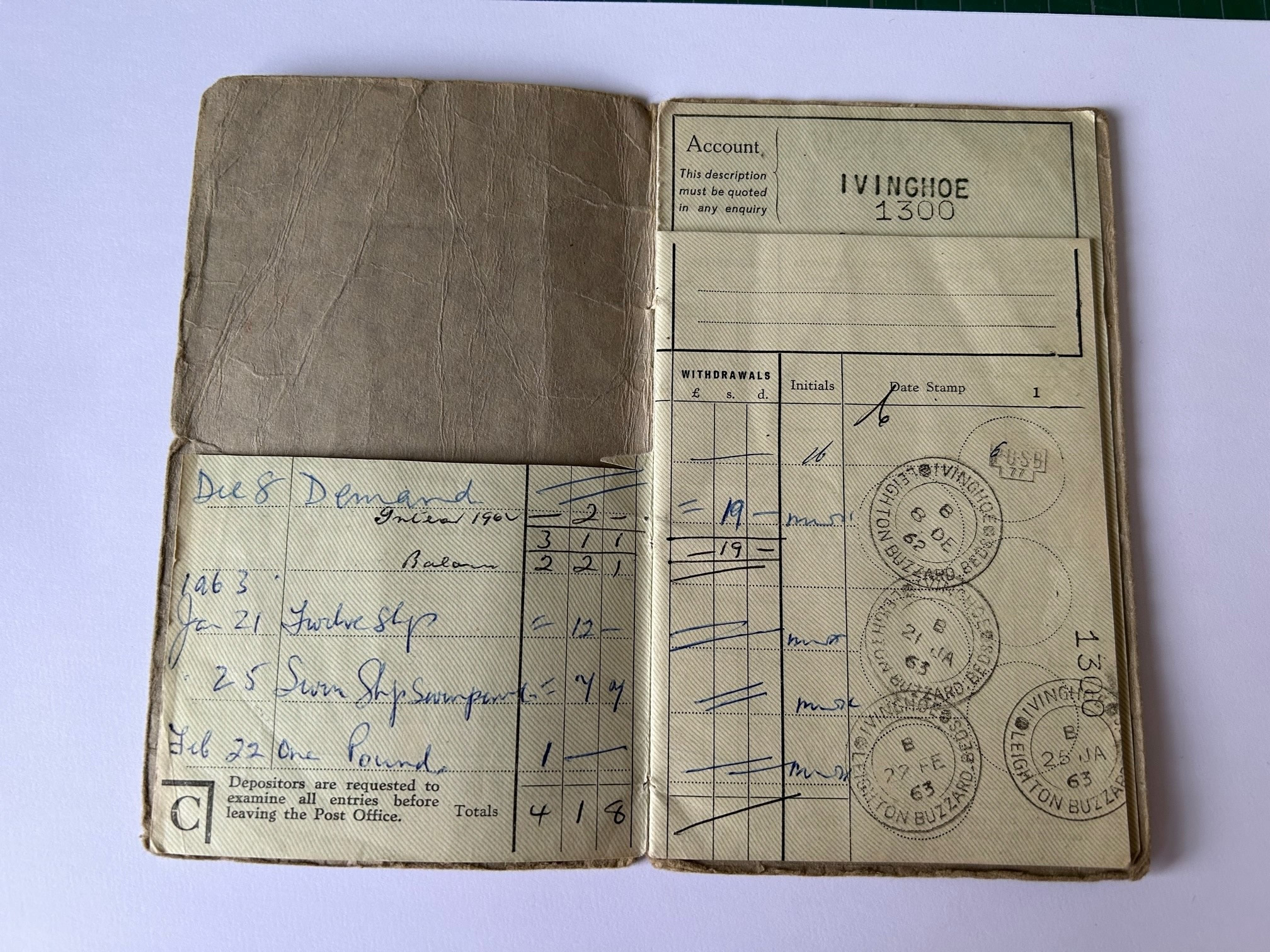 | E466 | Domestic | PO Savings book | Post Office Savings Book, issued by Ivinghoe Post Office, 1963 | ![]() |