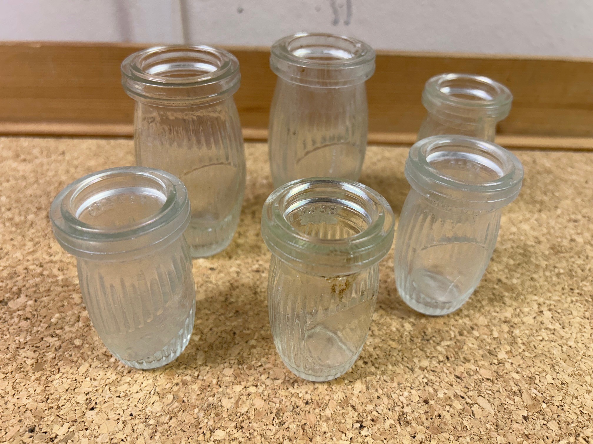 | F427 | Home | Glass food bottles | Empty, glass food bottles x8 | CC Bay 6 - Large glass cabinet | |