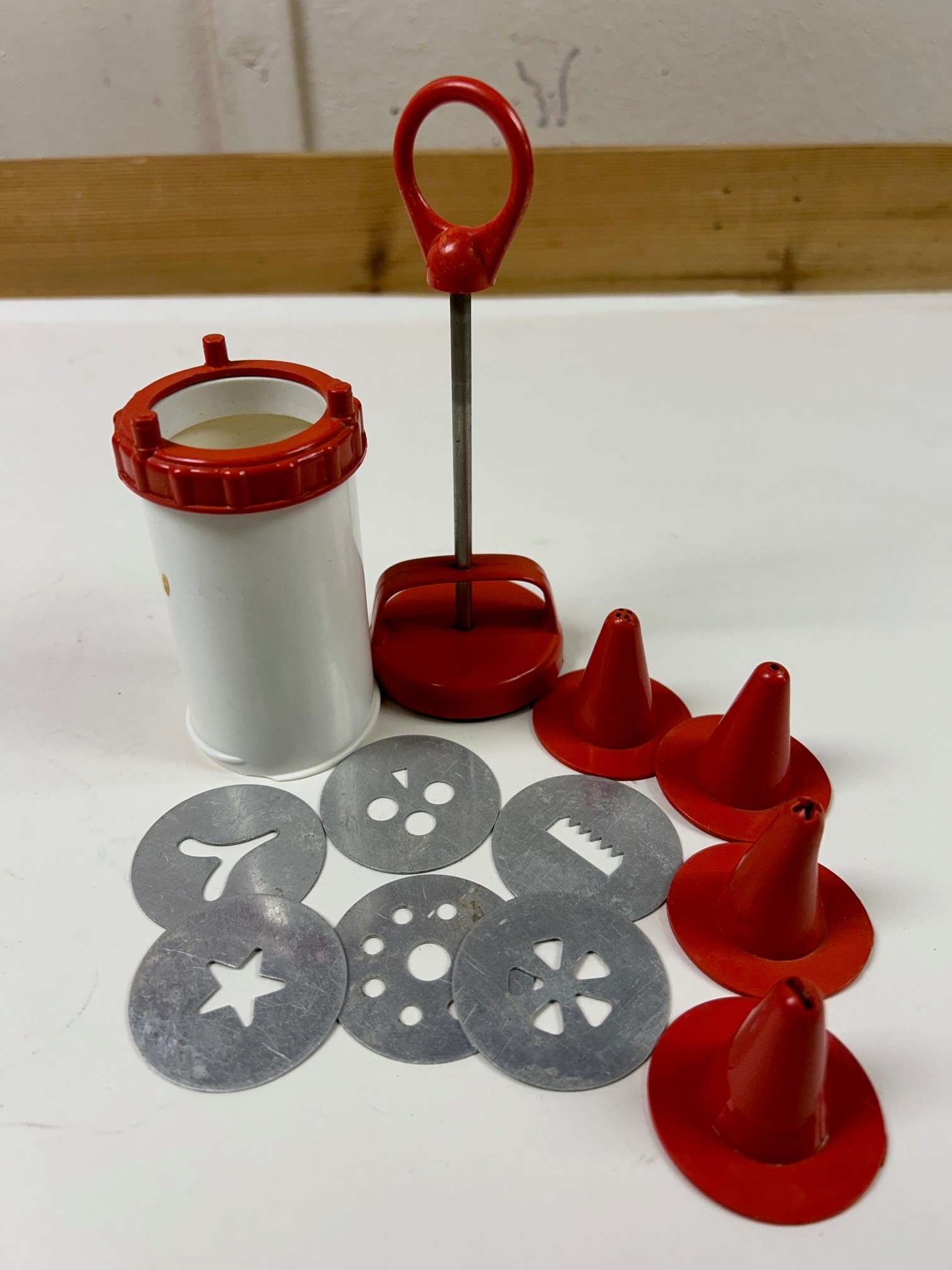 | F396 | Home | Piping tools | Piping tool - wooden handle & 4 nozzles | CC Bay 6 | |