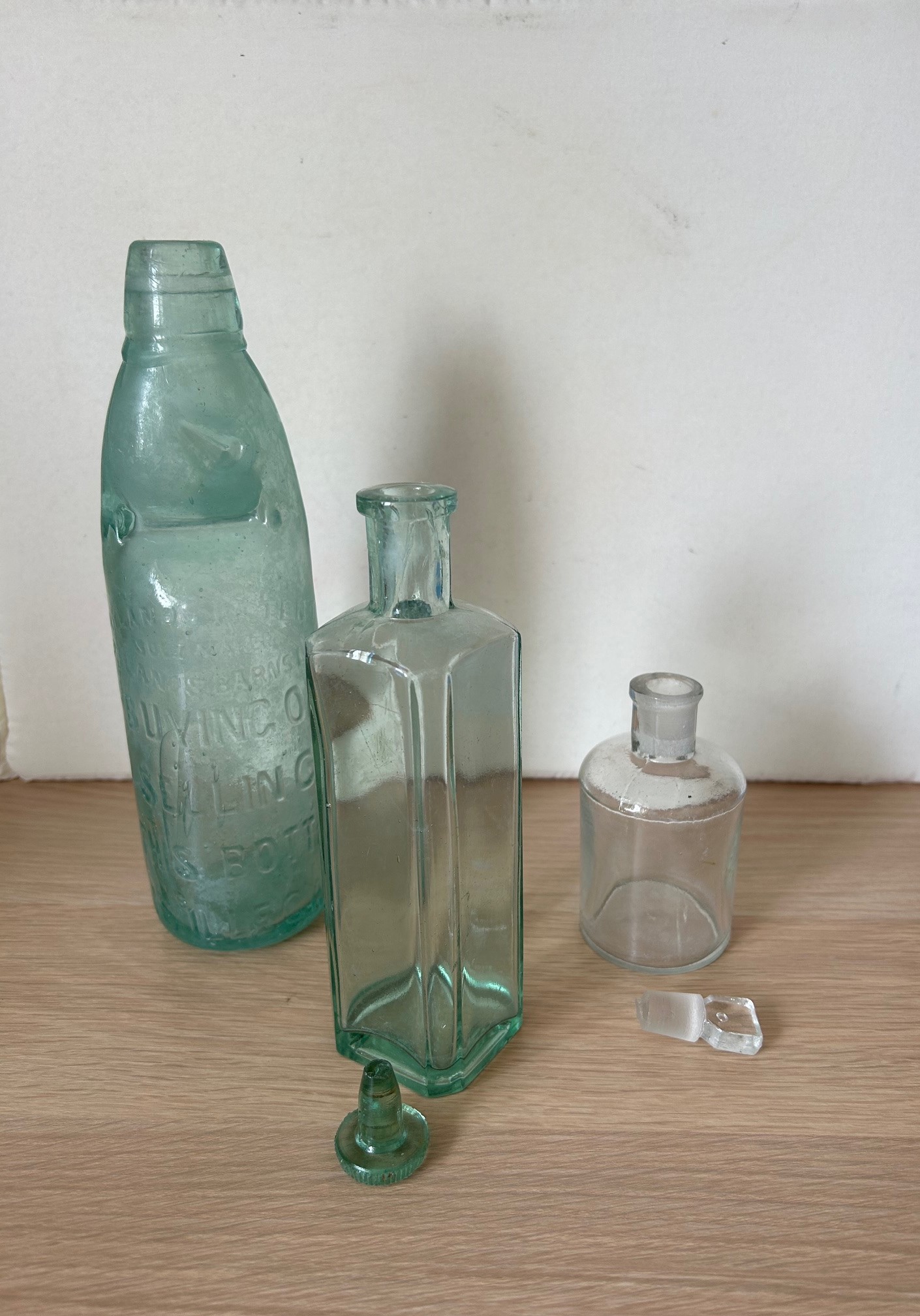 | F426 | Home | Medicine bottles | clear glass medicine bottles x 3 | CC Bay 6 | |