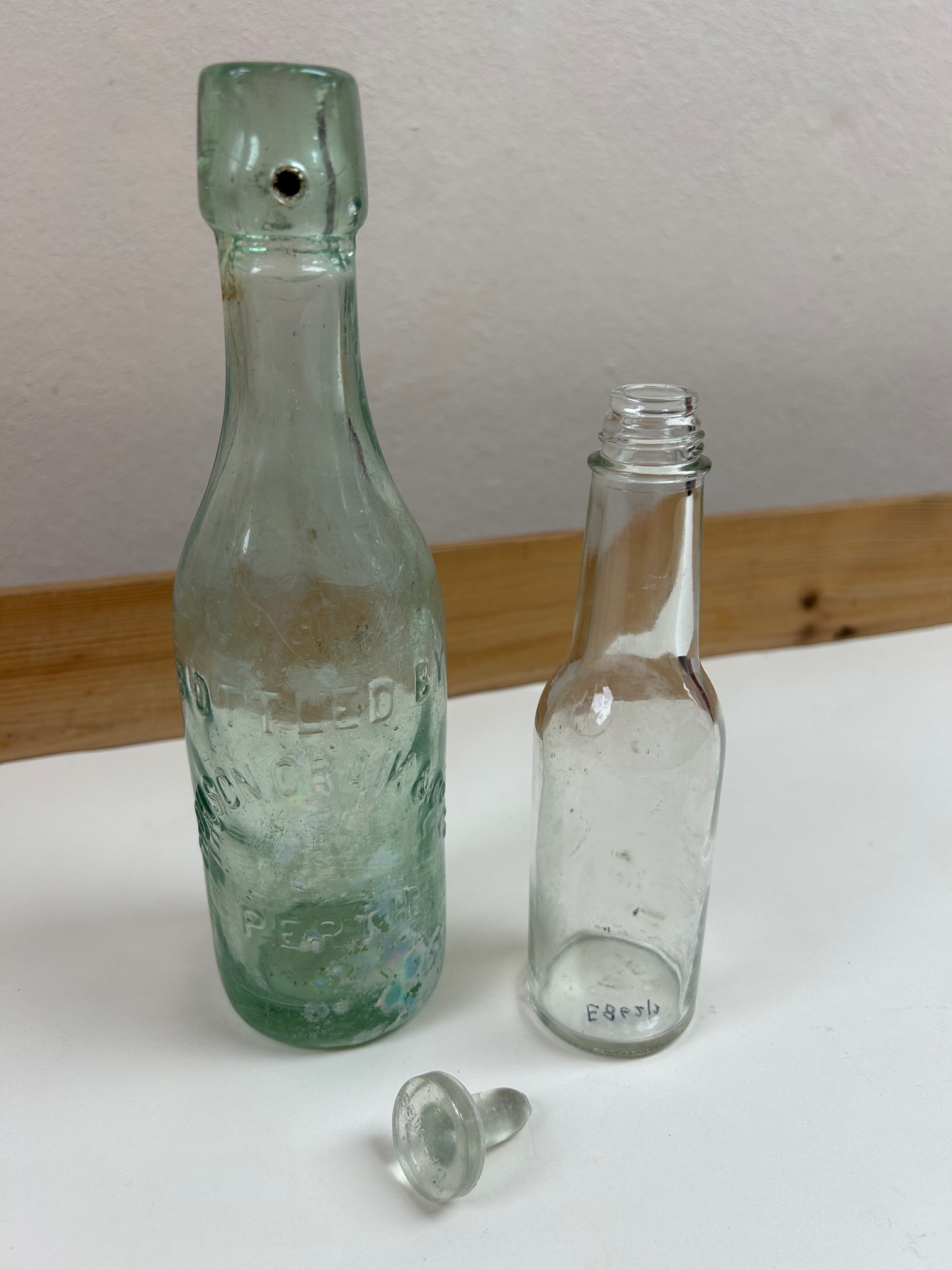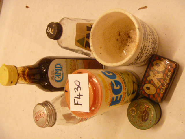 | E541 | Domestic | Glass Bottles | 3x large and 1 small Camp Coffee & Chicory bottles, 1x Branson's Coffee & Chicory bottle, 1x Brand A1 Sauce, 1x Eiffel Tower lemonade bottle. |