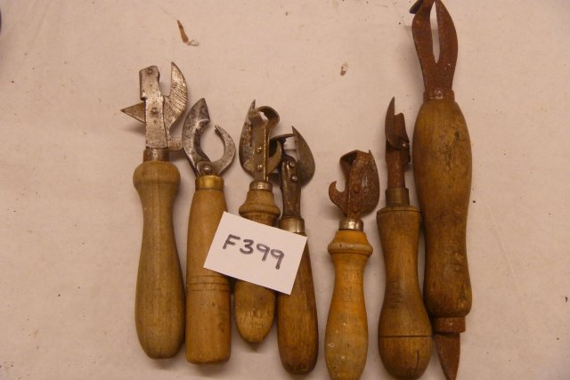 | F399 | Home | Tin opener | Tin openers - 7 various, wooden handled | ![]() |