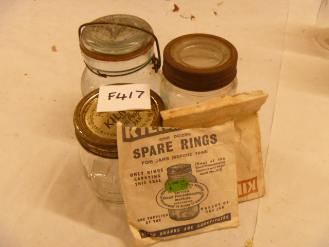 | F417 | Home | kilner jars | Kilner Jars - 3 small & pkt spare seals | CC Bay 6 - Large glass cabinet | |