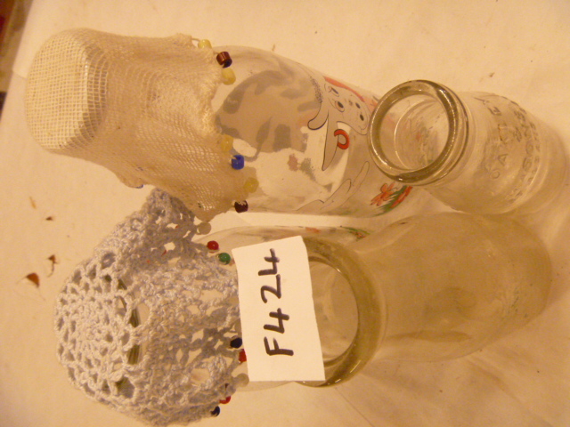 | F424 | Home | milk bottles | various milk bottles x2 & 1 bead cover | CC Bay 6 - Large glass cabinet | |