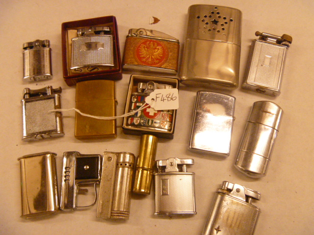 | F486 | Home | cigarette lighters | collection of 15 cigarette lighters & 1 matches box | CC Bay 6 | |