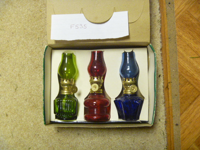 | F535 | home | Small oil lamps | Set of 3 Miniature Decoration lamps in card box | CC Bay 6 | |