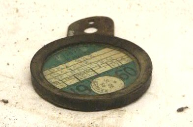 Vehicle tax disc holder from 1960; used for a Cyclemaster bicycle registration number PKX 928 |