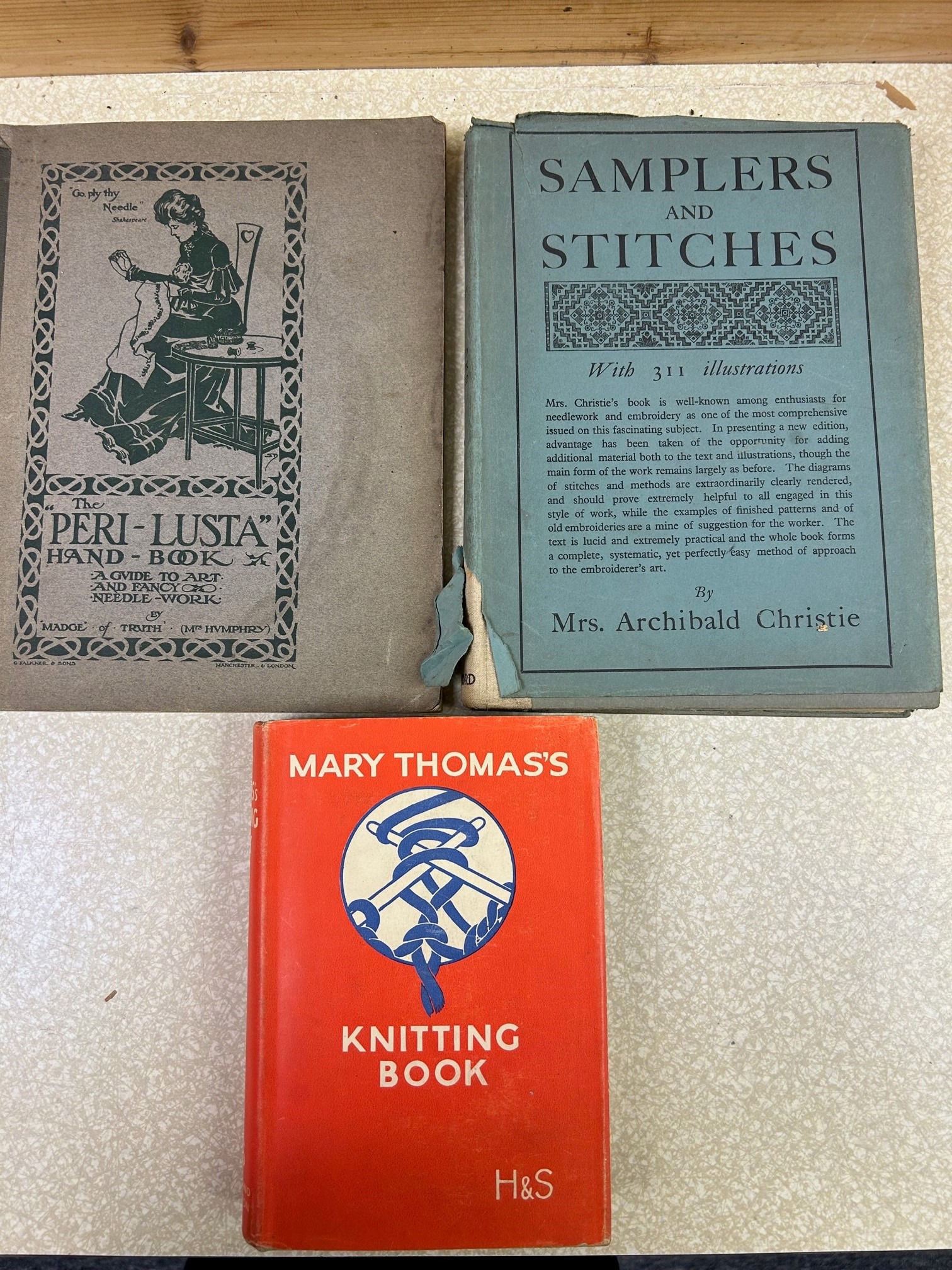 Mary Thomas's Knitting book 1938, Samplers & Stitches Mrs Archibald Christie 1929, The Peri-Lusta Handbook Madge of Truth. |