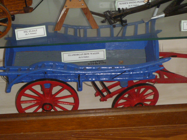 Glamorgan bow wagon. Blue body with red wheels. Fronts pivot. Side overhangers. |