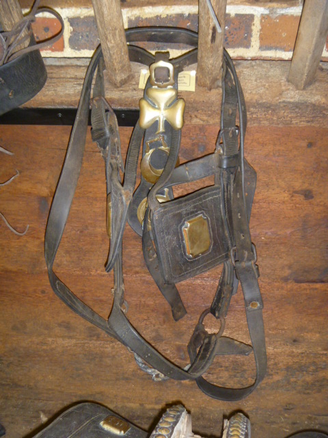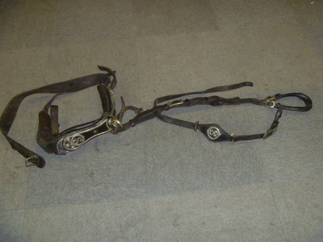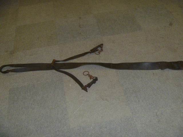Horses tail piece. Various straps and buckles. Main part of harness has loop at one end. |