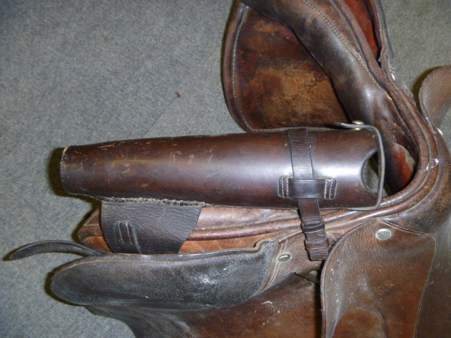 Leather hunting flask holder (fits to front of sadle) no flask |
